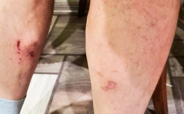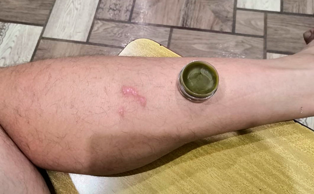 А это результат лечения ожога, который появился на коже после тесного контакта с таким подлым растением, как борщевик. Ради чистоты эксперимента парень мазал одну ногу канна-мазью, а на вторую наносил крем, который прописал ему доктор в больнице. Спустя неделю результат на лицо: