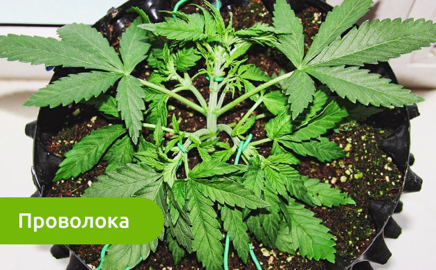 Данная техника повышения урожайности не требует покупки дорогостоящего оборудования, удобрений или стимуляторов. Все, что требуется от гровера, – это наличие свободного времени и правильное выполнение подгиба. Для фиксации стебля могут использоваться изолента, шнурки или мягкие веревочки, которыми ветви прикрепляются через отверстия к краям горшка. Кто-то отдает предпочтение скобам, которые обратной стороной углубляются в грунт, кто-то берет на вооружение плотную проволоку в мягкой оплетке.