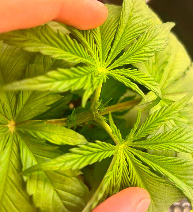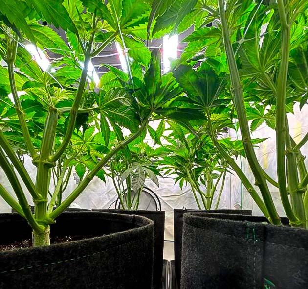 Кусты отлично прижились после пересадки и быстро пошли в рост. На 17-й день я выполнил первый полив легким раствором CANNA Terra Vega (2,5 мл/л), а на 19-й день провел топпинг. Растения отреагировали спокойно, и уже через пару дней из верхних узлов пошли новые ответвления.