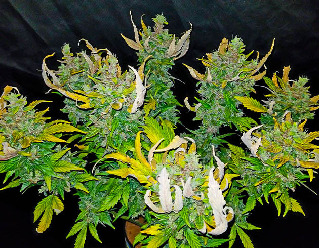 Я просто без ума от количества смолы на этих растениях. Крупные белоснежные трихомы полностью покрывают не только цветы, но и все прилегающие листочки.