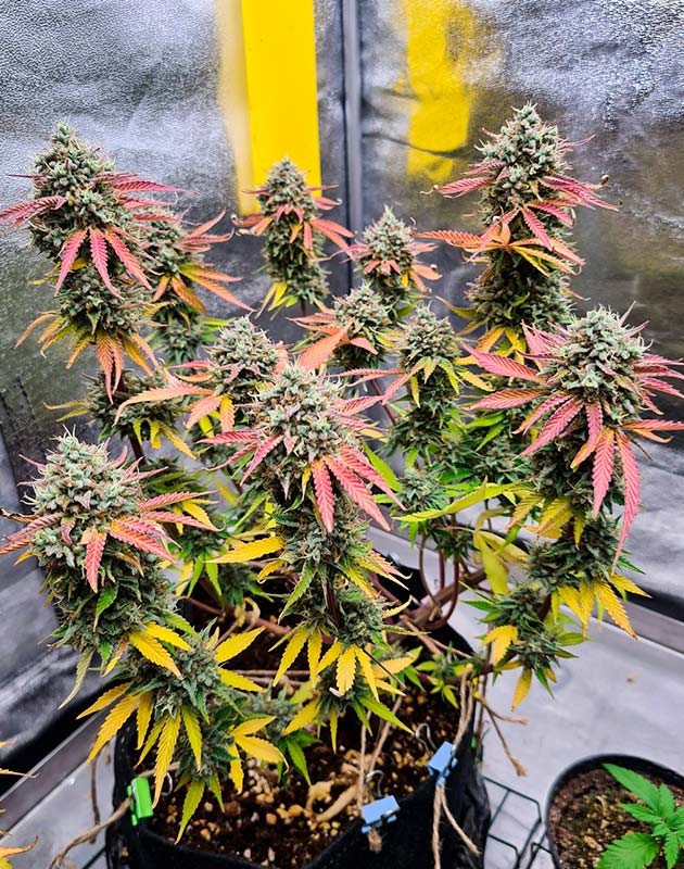 Сорт конопли Cherry Cola Auto оставил после себя только позитивные впечатления, даже несмотря на мой просчет с подкормкой. Кустики продемонстрировали стойкий характер и развились хорошо, даже с учетом дефицита. Соцветия сформировались среднего размера с очень приятным ароматом. Но об этом чуть позже. Учитывая небольшой рост кустов, можно выращивать в стелс-боксе. Если решите гровить на кокосе, то не повторяйте моей ошибки и кормите нормально, 400-500 ppm – это очень мало.