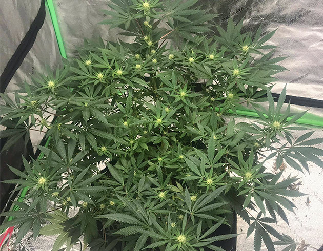 На десятой неделе стали полноценно видны результаты тренировок. Насколько же удачными оказались мейн-лининг без топпинга и постоянная дефолиация. Теперь отчетливо видно, что на этом кусте будет огромное количество соцветий. Они формируются по всей длине ветвей, их очень много. К концу десятой недели рост куста был около 75 сантиметров, а в ширину он даже больше.