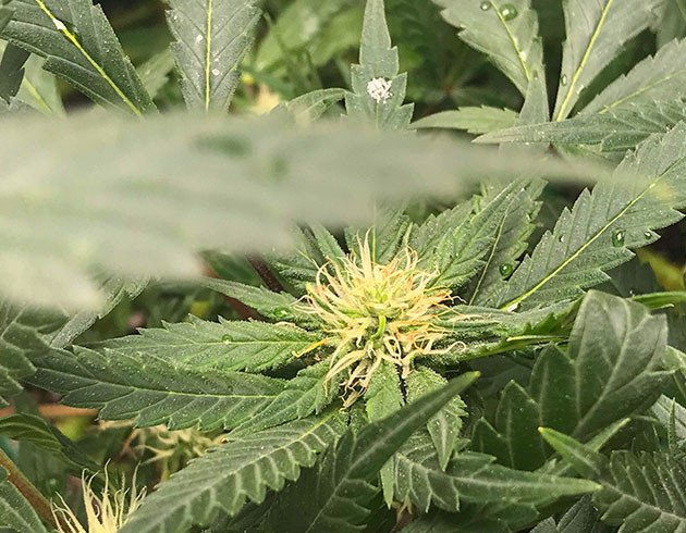На 11-й неделе я заметил, что на некоторых соцветиях начали появляться оранжевые волоски. Не понимаю, с чем это связано, так как было слишком рано, еще не прошел даже предцвет, и растение продолжало тянуться. Отмечу, что с кустом никаких проблем, он выглядит полностью здоровым, не проявляет никаких признаков дефицита или переизбытка.