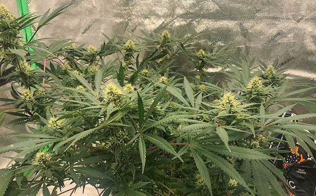 Завершающий этап развития куста, соцветия очень активно набирают массу. У меня были опасения, что ветви могут не справиться с их весом. Но всё же мне не пришлось никак их подпирать или подвязывать. Я не стал делать промывку, так как куст получал умеренное количество удобрений на протяжении всего жизненного цикла и не проявлял никаких признаков засола. Поэтому на последних неделях минимум манипуляций с кустом, только 48 часов полной темноты перед рубкой. Если быть честным, то мне стоило огромных усилий, чтобы не срезать куст на 17-й неделе и додержать его до конца 18-й. К тому же уже на 17-й неделе часть трихом на шишках была янтарной.