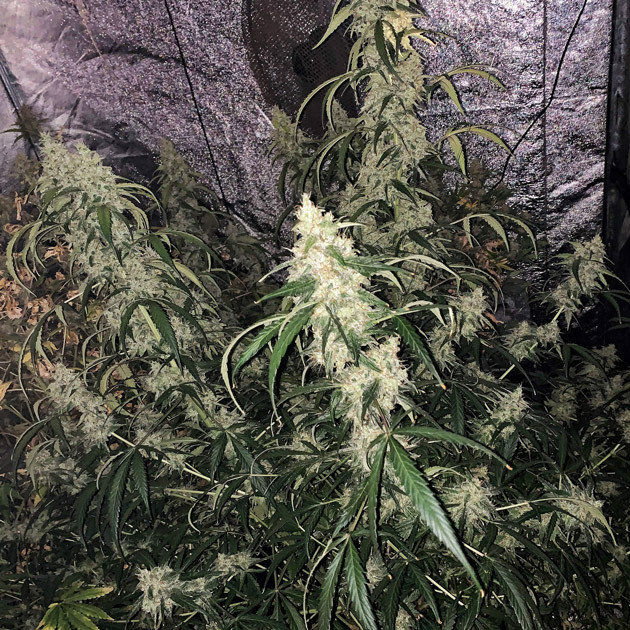 Auto Johnny Cage от «Семяныча» – высокий автоцвет с раскидистой структурой. Такое растение будет тяжело вырастить в небольшом боксе. А вот для владельцев просторных и высоких гроубоксов этот сорт станет настоящей находкой. Этому автоцвету почти удалось убедить меня в возможности получения урожая в сроки, указанные в паспорте растения. От семки до харвеста прошло всего 11 недель. А это лишь на две недели дольше заявленного срока. Размер шишек и их маслянистость – одна из главных особенностей Auto Johnny Cage, которая мне понравилась. Шишки действительно внушительные. Внушительным получился и урожай. После просушки я получил 253 грамма готового продукта с одного куста. Попкорн со второго «мертвого» растения я не взвешивал.