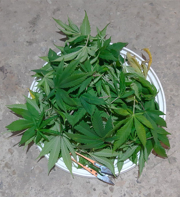 Добавил неучтённые «Канназим» и «Карболоад» по 5 мл, рН 6,4 и ppm 1385. Из дренажа собрал примерно 1,4 л с рН 6,1 и ppm 1800. Листьев много убрал, повреждённых и всяких, на харвесте меньше будет стричь. Это была последняя большая стрижка. После неё растиха стала такой.
