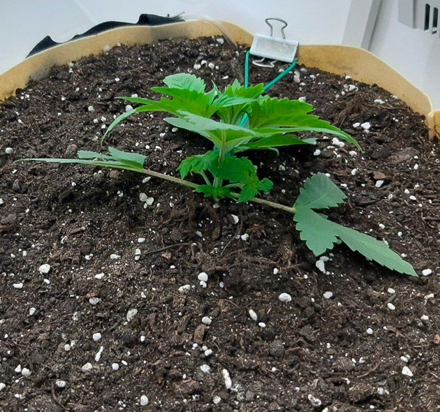 Растиха подвытянулась, и я решил начать её гнуть, но сперва отрезал первую пару листьев, чтоб не мешались они. Включил кулер от ПК на обдув и еще немного приподнял лампу. Полил опять 1 литром раствора с теми же самыми компонентами (в тех же самых пропорциях), только ещё добавил 2 мл органического стимулятора «Биобизз БиоХэвэн», рН понизил до 6,2, ppm был 169.