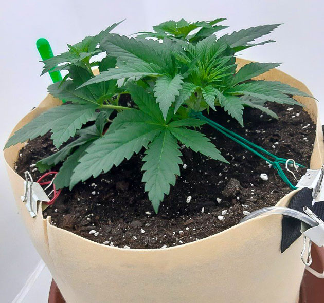 Гроубэг на 25 литров, дренаж – пенопласт. Также практикую аэрацию корней и использую самодельный генератор CO2 в бутылке.