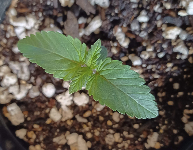 На 11-й день жизни кустика дал ему воды с CalMag от Sensi, концентрация 1,3 мл/л, pH – 6,5. Влажность в гроубоксе опустилась еще ниже, но растиха будто и не замечает этого. Если так пойдёт и дальше, то придётся принимать меры, пока же всё окей.