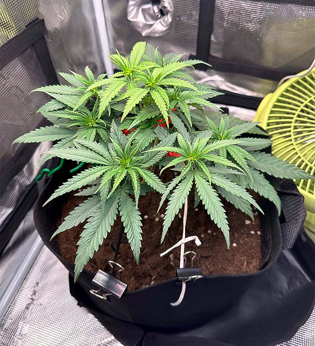 Переход на следующую стадию развития прошел успешно. Я продолжаю использовать LST-подгиб и периодически срезаю ненужную листву. Также я увеличил концентрацию всех используемых удобрений до 1,5 мл/л.