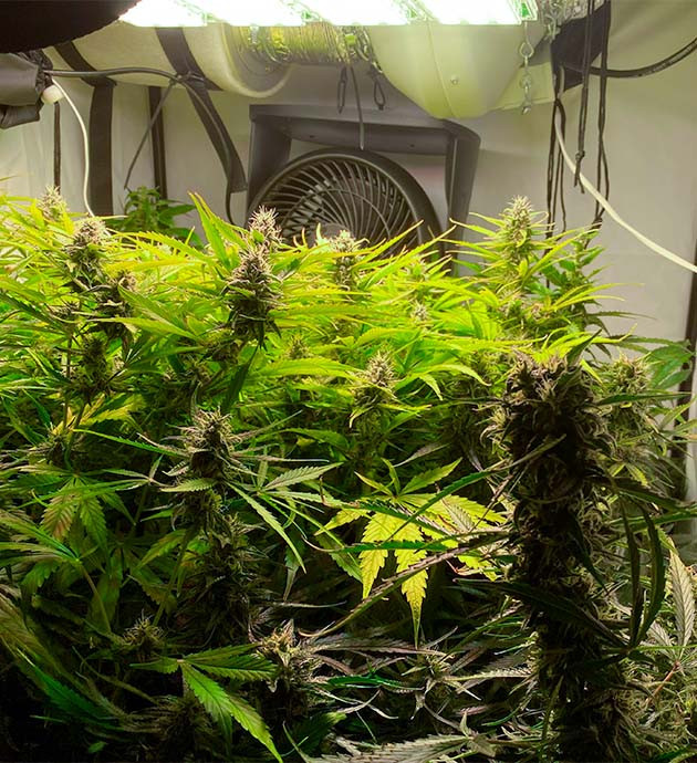В начале недели было принято решение еще раз натянуть сетку над макушками, так как они все еще немного подрастали. Наконец-то соцветия начали набирать массу, но верхние ярусы страдают из-за слишком близкого расстояния до лампы. Верхушки светлеют от стресса, но пока не критично. В любом случае ничего сделать с этими монстрами я не могу, все, что было в моих силах, я уже предпринял. Продолжил кормить по прежней схеме и удалил еще немного листвы и пасынков на нижних этажах.