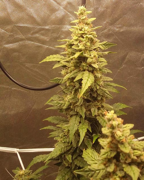 На десятой неделе растиха осталась в гордом одиночестве. Я не упоминал, но вместе с этой семкой я засадил и несколько других. Чего палатку гонять ради одного куста? Остальные уехали в отдельную комнату, которую я давно готовил, и вот свершилось. Ну а «Критикал XXL» дозреет уже здесь. А зреет она достаточно бодро. На шишках появились оранжевые волоски, всё как полагается. Ничего с кустом не делал, поливал, проверял на наличие плесени, хотя взяться ей по большому счету неоткуда, да любовался макушками, каждую из которых подвязал к отдельной палочке-подпорке.