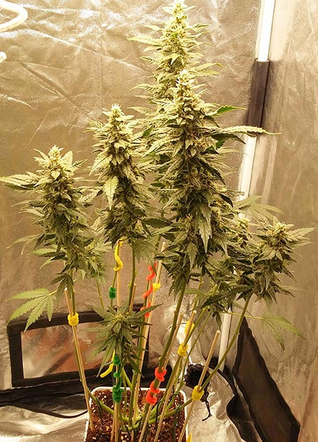 Кустик, конечно, не тянет на XXL, но, в принципе, всё ожидаемо: топпинг и мейн лининг – это не самый лучший способ получить большой куст на веге, но точно отличный вариант для хорошей урожайности в итоге. Я ничуть не сомневаюсь в правильности своих действий, поэтому продолжаю действовать, как наметил. Гну веточки и поливаю раствором два раза в день: