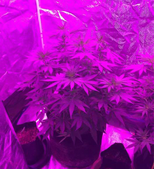 Учитывая, что это сатива и она будет сильно вытягиваться после старта цветения, я решил не рисковать. И правильно сделал. Уже через неделю высота растений была 70 и 63 см соответственно, а еще спустя 5 дней 90 и 87 см. Вуаля! Они практически сравнялись.