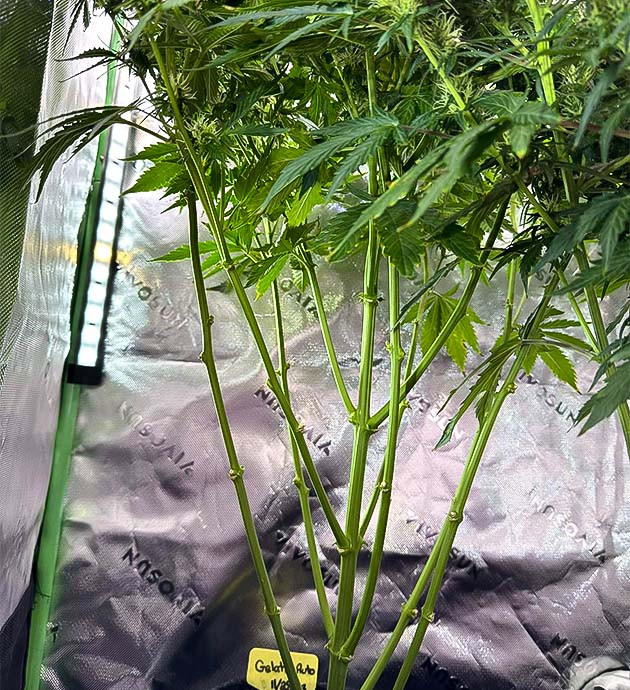 На 10-й неделе я был вынужден перенести кусты обратно в старую палатку. Двух бордов по 100 W банально мало для нового тента, они не покрывают всю площадь в полной мере, замеры в разных углах показали далеко не самые лучшие числа. Так что Gelato Auto снова на своём старом месте, цветет и пахнет. Запах тяжело описать, так как он смешивается с другими кустами, да и я далеко не парфюмер. Конопля и конопля. Куст уверенно выпивает три литра за двое суток и просит еще. Из подкормки исключил компонент Grow, давал компот два раза, на 64-й и 68-й день, между ними один полив чистой водой. Обрезал довольно много мелких шишек, попкорна из середины куста.