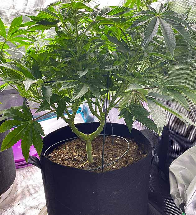 Рост куста конопли на четвертой неделе выращивания