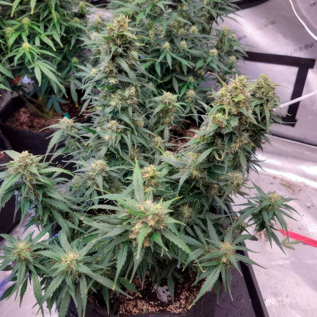 56-й день. Регулярная обрезка и дефолиация этих девушек в их последние дни. Несколько моментов относительно роста, которые стоит отметить. Освещение под кроной не лучшая идея. У меня были бутоны в нижней части, и они довольно хорошо развивались, но в итоге я все равно их обрезал, чтобы улучшить приток питательных веществ к верхней части. Растения созревают с разной скоростью, поэтому я кормлю их соответственно. Одна девушка уже в режиме промывки только потому, что она выглядела практически готовой к харвесту, и я не хотел ее передерживать. Остальные получат 1 или 2 кормления с соответствующим питанием, после чего также уйдут на промывку.