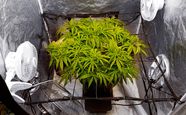 На протяжении этих недель я продолжал тренировать растиху. Сделал еще одну тщательную дефолиацию, но девочка очень быстро восстановила зеленую массу. Ей уже явно было тесно в маленьком тенте для вегетации, очень скоро она переедет в большой бокс для цветения. Растиха продемонстрировала себя с лучшей стороны, восстановилась после трёх топпингов, сформировала крепкие ветви и хорошо наращивала зеленую массу после каждой дефолиации. Создавалось впечатление, что ей немного не хватает питательных веществ, так как последние отросшие листья были светло-зеленые, но я решил не форсировать события до начала цветения. Большой бокс освободился, и последнюю неделю в веге Mimosa Evo стояла уже в своём собственном домике.