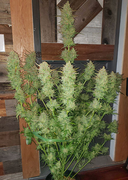 Что касается генетики Mimosa Shot, то это максимально беспроблемный сорт. Как видите, четырех недель в веге оказалось вполне достаточно, кусты мощно набрали на предцвете и вымахали в полутораметровых монстров. Все растишки одинаковые с точки зрения фенотипа, никаких заметных мутаций или специфических особенностей. Мощная центральная кола, крепкие боковые ветви, шишки среднего размера. Сушка урожая заняла 8 дней. Кусты подвешивал, как есть, маникюрил после. Итоговый результат шишек без попкорна и трима – 455 грамм. Солидное пополнение моих запасов, добрая половина пойдёт на долгосрочное хранение.