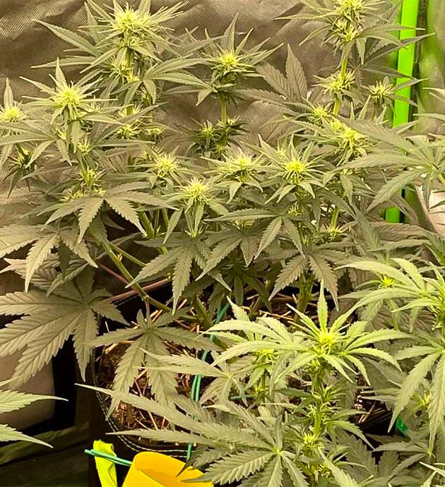 Кажется, тяжелый период в жизни для обеих Mint Jelly Auto уже закончен. Все они хороши собой и активно работают над формированием сверхароматных шишек. Более того, растение, которое было угнетено, теперь имеет несколько прямо-таки крупных бутонов и даже начинает проявлять немного синеватого цвета. Другой, более крупный куст вообще взлетел! У него почти десяток верхушек и бутончики по всей высоте.