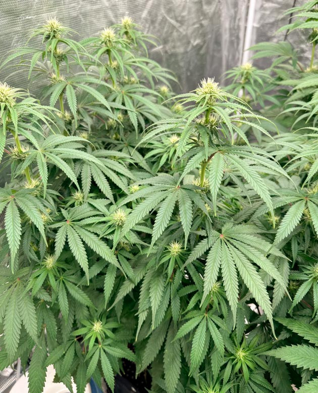 Переход прошел успешно, и растения зацвели. Они быстро увеличиваются в размерах, вследствие чего листвы и ветвей становится слишком много даже для моего просторного гроутента. Периодически провожу дефолиацию, но это не особо помогает. Высота кустов уже достигла отметки в 76 сантиметров. В удобрениях я лишь увеличил количество Pure Blend Pro Bloom Soil до 1,5 мл/л.