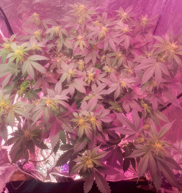 Соцветия становятся все пышнее, уже начали вытягиваться. Поливаю через раз просто водой и компотом, а через два с калмагом. Все растворы по таблицам, ничего нового, без экспериментов на этот раз. Стрижка каждые пару дней. Запах от растихи есть, но слабый, думал, будет сильнее.