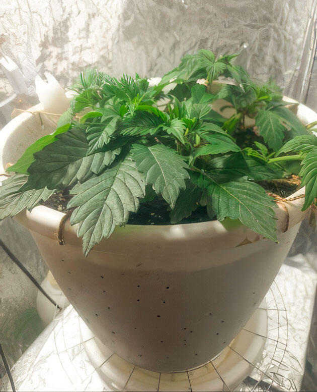 Мне пришлось на несколько дней отъехать по делам. Оставил своего монстрика под присмотром надежного друга. Все расписал, и никто не подвел, ни друг, ни куст. Отлично развивается, мне кажется, что ему будет тесно в выбранном горшке. Размах «крыльев» уже 24 см, а ведь это только 15-й день цикла, начало 3-й недели. Меня все еще нет дома, но мы часто видимся по видеосвязи. Кстати, на 16-й день цикла товарищ, почитав различные статьи и вдохновившись моим кустиком, решил, что надо гнуть. И – о чудо! – сделал это хоть и по видеосвязи со мной, но чертовски зачетно.