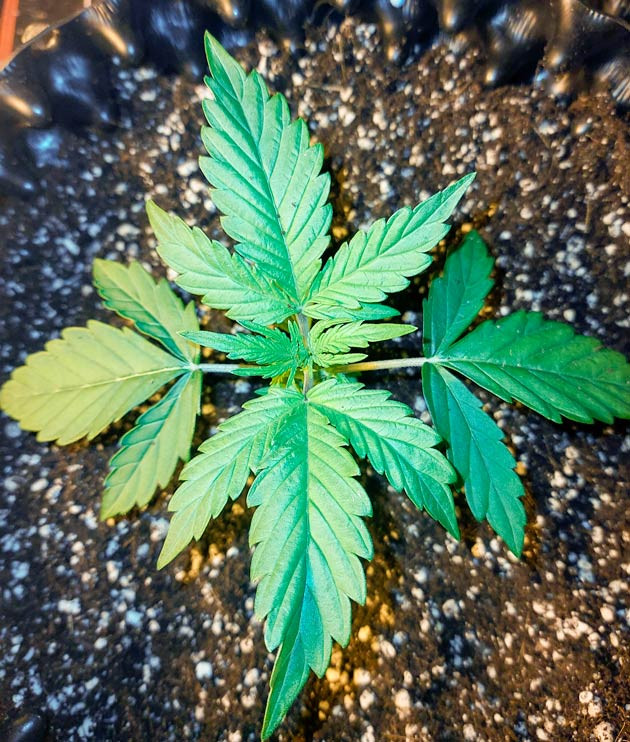 Проращивание прошло успешно, и каждый росток демонстрирует отличные темпы роста. К концу первой недели я наблюдаю четыре здоровых листка на каждом из них. Температура в гроутенте составляет 29 °С, а расстояние от лампы до кустов равняется 60 сантиметрам. В общей сумме я использую 12 мл/л удобрений для всех растих, полный список выглядит так: