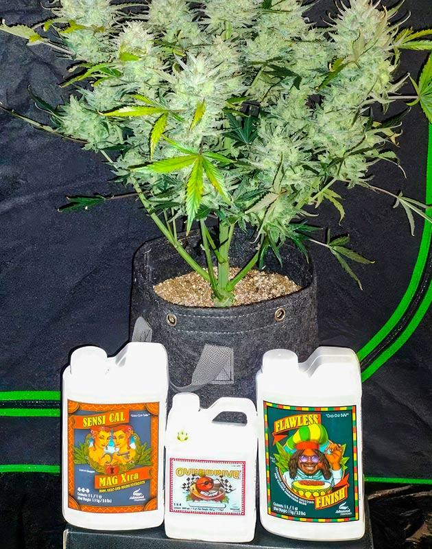 С этого момента, помимо Sensi CalMag Xtra, я подключил еще и Overdrive. Этот бустер как раз рассчитан на финальный рывок во время цветения, когда растению нужно максимально эффективно распределять энергию и укреплять закладывающиеся шишки. Пока реакция отличная, аромат начинает усиливаться, а развитие идет ровно так, как и хотелось бы.