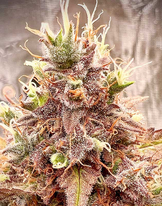 После пяти недель цветения бутоны «Медузы» демонстрируют завораживающую гамму оттенков: от розового и фиолетового до красного и зеленого. Это настоящий шедевр, который словно пришел ко мне прямиком с холста художника. Трихомы «Медузы» напоминают мне россыпь сверкающих бриллиантов. Около 40 % уже приобрело молочно-белый оттенок, что было прямым сигналом к началу промывки. Использую для этого одну из баночек вышеупомянутого Aptus – препарат Enzym+.