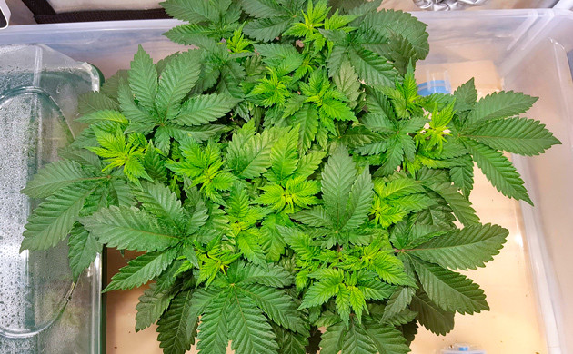 Куст зацвел после 60 дней веги. С началом цветения я применил тренировку высокой интенсивности, некий гибрид суперкроппинга. Собираюсь тренировать растиху таким образом каждые три дня на протяжении первых двух недель цветения. Влажность в тенте заметно повысилась, до 64%.