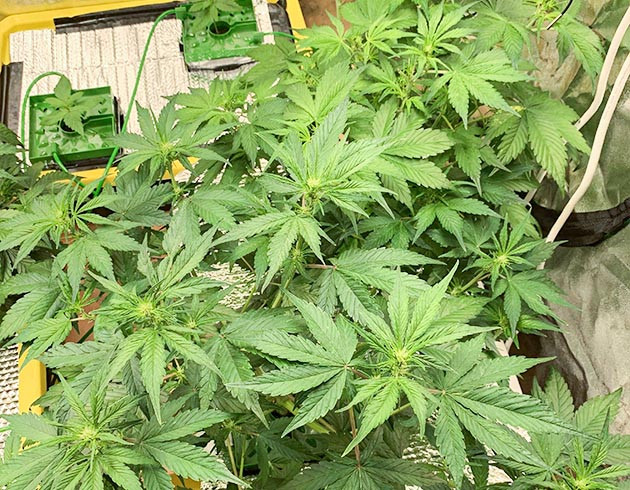 К концу второй недели растения выглядели просто замечательно. Стебли толщиной с карандаш, а рост девочек составлял плюс-минус 20 сантиметров, и такого же размера они были в ширину. Раствор остается прежним, условия в гроутенте держатся на стабильно-оптимальном уровне: