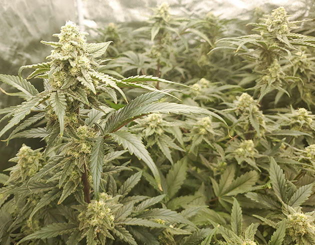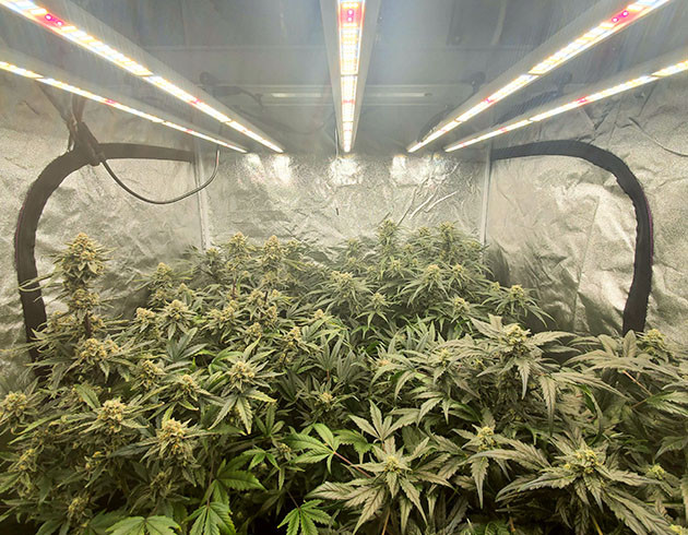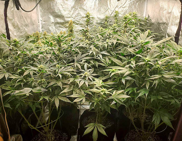 Девятую и десятую недели растения получали «компот» в прежней пропорции, ppm 900. К 9-й неделе вытягивание кустов остановилось. Их рост составлял чуть выше метра, от 100 до 105 сантиметров. Запах стал очень интенсивным, и угольный фильтр не справляется с пятью кустами. Стоит открыть палатку на несколько минут и стойкий цитрусово-конопляный запах стоит в комнате несколько часов. Поставил рядом с боксом автоматический освежитель воздуха, но он несильно изменил ситуацию.