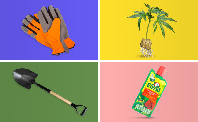 Тут, конечно, много зависит от того, где вы собираетесь высаживать растения, как будете потом за ними ухаживать и как часто планируете наведываться на плантацию. Однако примерный список инвентаря для аутдорного выращивания конопли выглядит вот так: