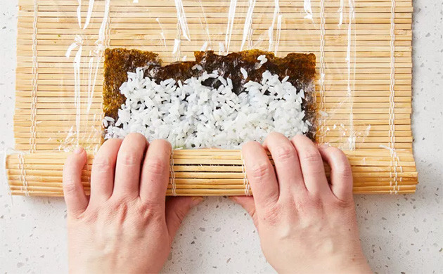 5. Аккуратно сверните роллы с помощью коврика, слегка надавливая, чтобы форма хорошо держалась.