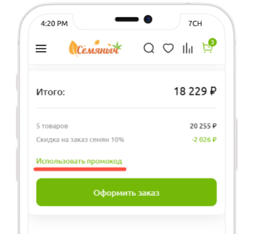 Чтобы применить промокод, необходимо выполнить условия конкретной акции, после чего ввести его в соответствующее поле в корзине и нажать “применить”.