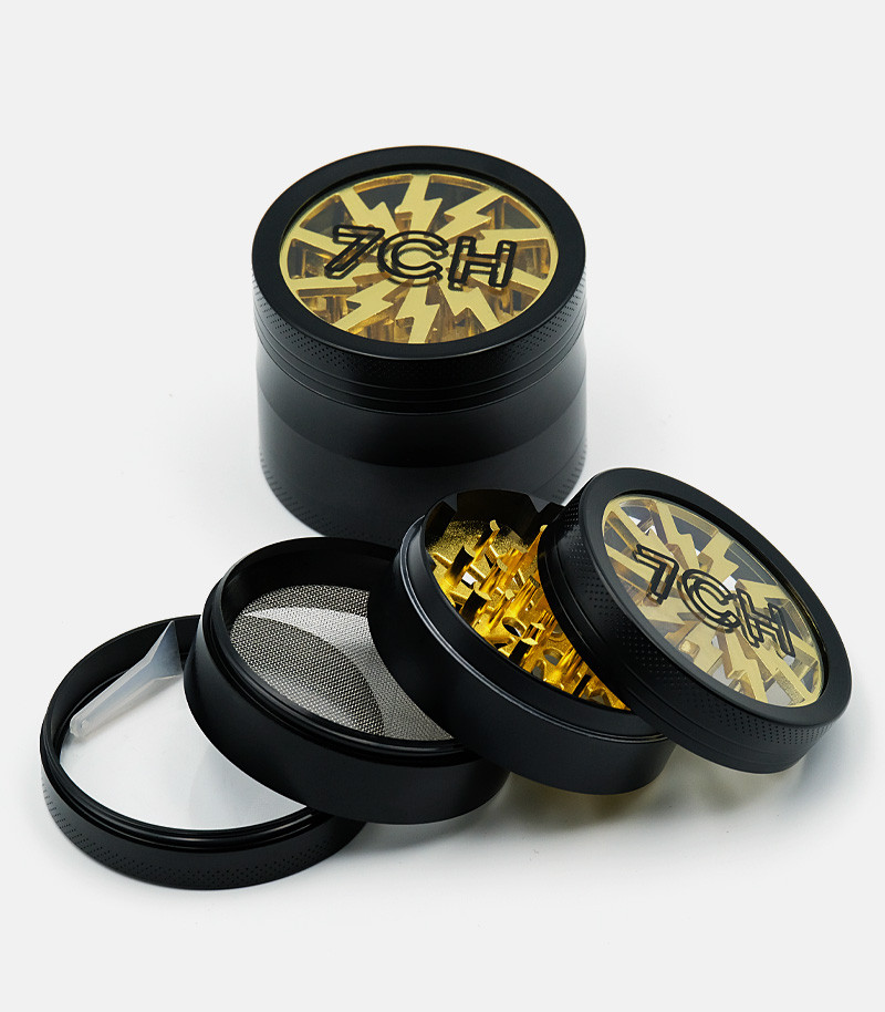 Измельчение сушеных материалов еще никогда не было таким простым. Гриндер из цинкового сплава – это надежный девайс, который прослужит гроверу долго. Он состоит из трех камер. Отличительная особенность изделия заключается в прозрачной верхней крышке. За счет этого можно наблюдать за процессом измельчения. Ножи ромбовидные и очень острые, что позволяет накрошить сушеные травы за несколько движений. Крышка крепится к отсеку с лезвиями при помощи магнита. Таким образом, даже если гриндер перевернуть, он не раскроется. Следующие две камеры предназначены для хранения измельченного продукта. Одна большая и достаточно вместительная, она имеет диаметр 63 мм. Нижняя камера используется для сбора пыльцы. Для этого отсек оснащен металлической сеточкой, через которую просеивается самая мелкая фракция. У гриндера оригинальный дизайн во многом благодаря прозрачной верхней крышке. Доступен для заказа в разных цветах.