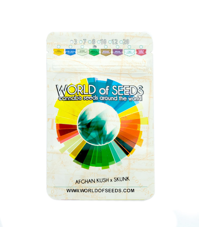 Семена сорта Afghan Kush X Skunk fem (World of Seeds) Испания, Феминизированные, Фотопериодные, ТГК-19