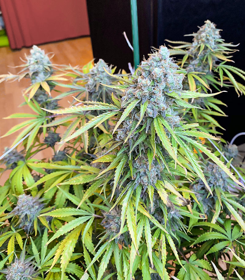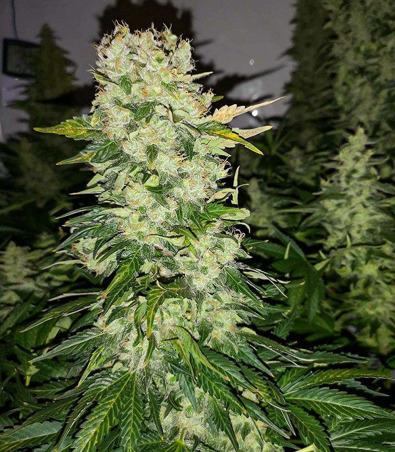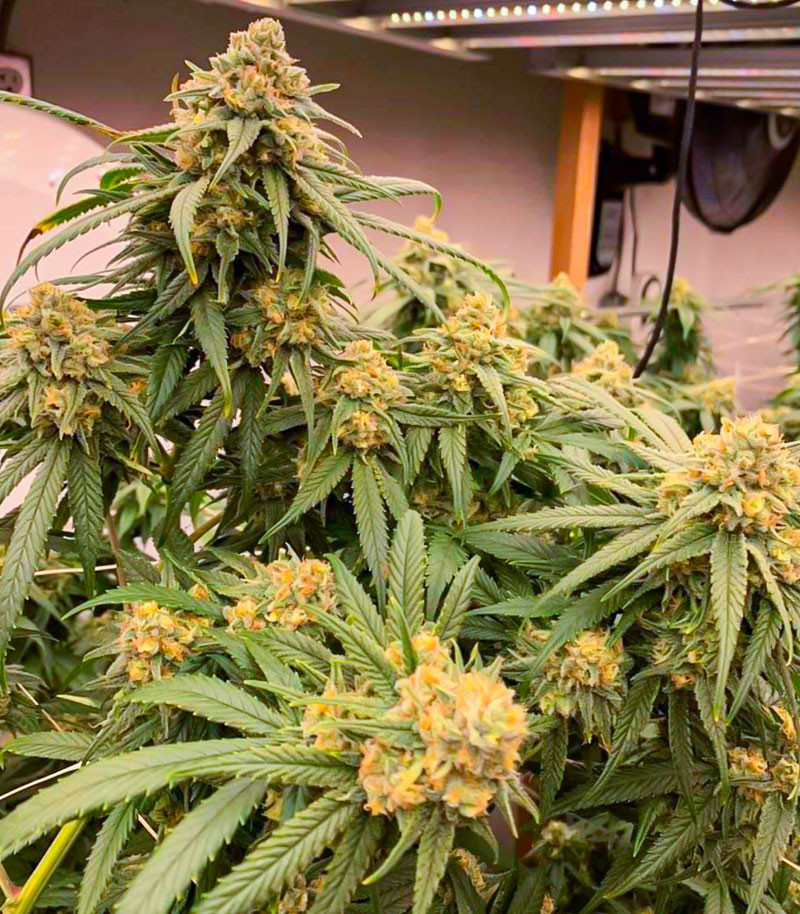 Во время выращивания рекомендуется поддерживать температуру от 18 до 26 градусов. Растения больше предпочитают прохладные условия, нежели жару. Они не станут сильно стрессовать при повышении температуры до 28-30 градусов, но именно прохлада в комбинации с хорошим обдувом поможет реализовать природный потенциал. Если все сделать правильно, то уже спустя 7-8 недель цветения можно будет собирать долгожданный урожай. Производительность в помещении достигает показателя в 450-550 г/м², а в открытом грунте каждый куст принесет владельцу до 500-600 грамм. К харвесту соцветия покрываются толстым слоем смолы, среди которой, словно огненные вспышки, располагаются ярко-оранжевые пестики.