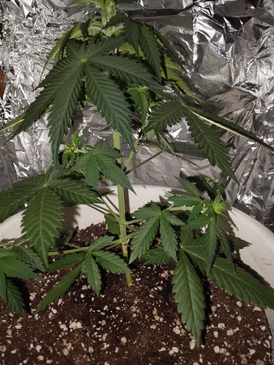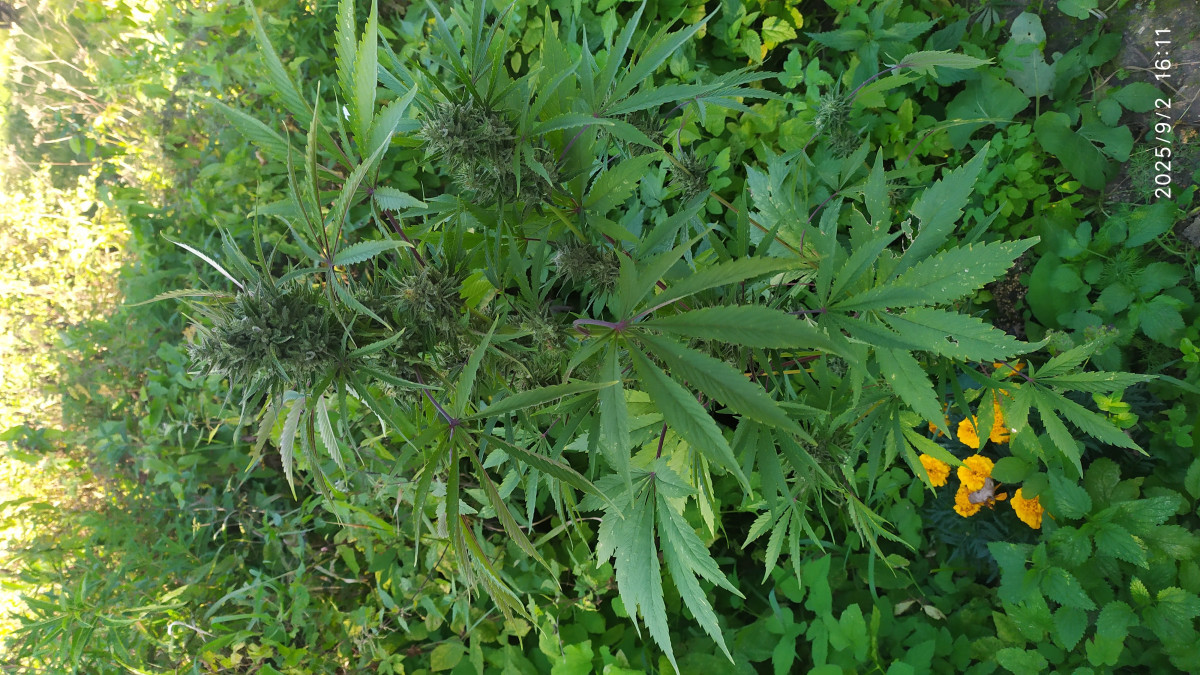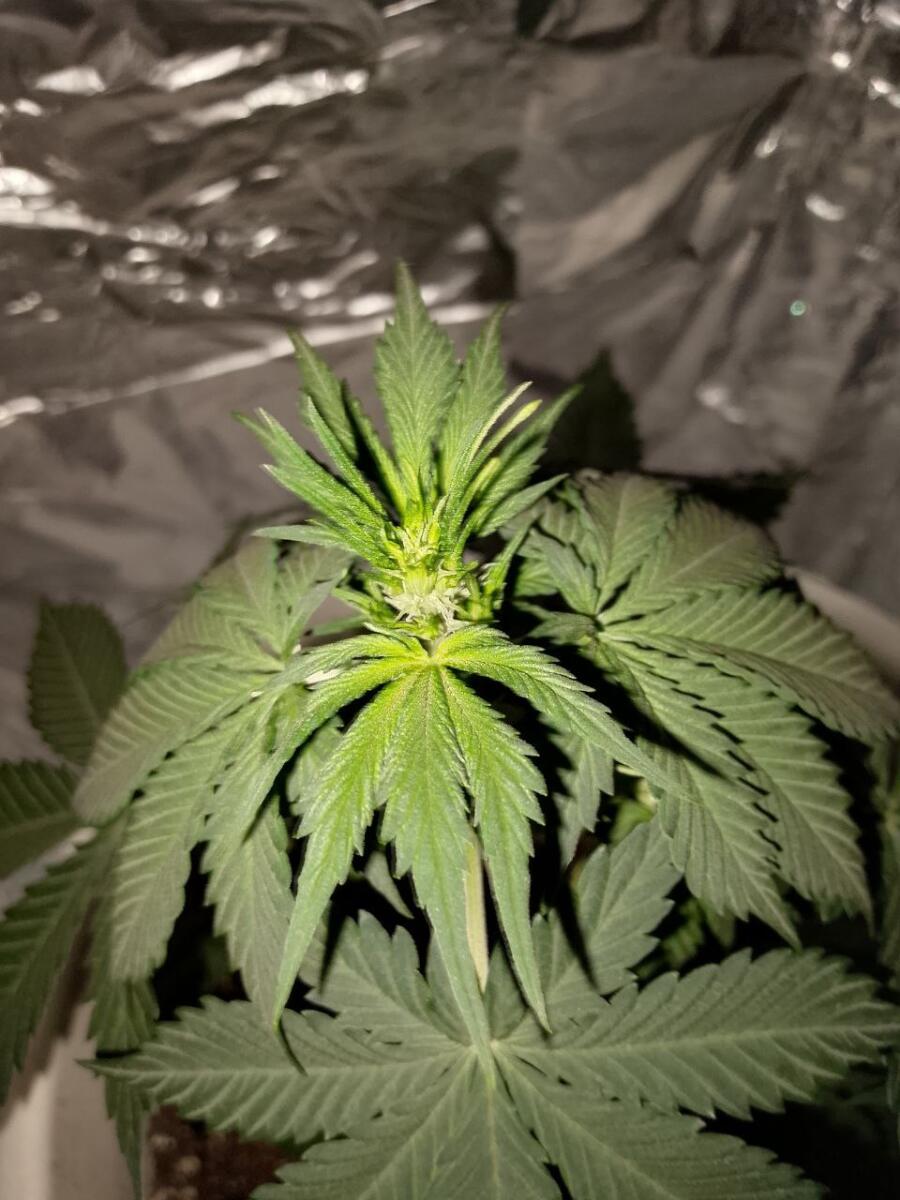 листья темно зеленые и все цветы обсыпало трихомами очень рано. Цветы у него редкие но мега плотные(что удивительно не подвержены гниению).