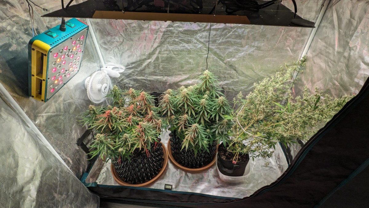 3 семки и 3 разных растения. Одно вообще не хотело развиваться нормально, но не выбрасывать же его? Решил дать ему шанс. Развитие шло не так чтоб активно, в 3 недели они все явно недобирали. Но к 6 неделе оклемались и вскоре зацвели, но продолжали развиваться по-разному и выглядеть по-разному. В 10 недель все были срублены и отправлены на просушку.