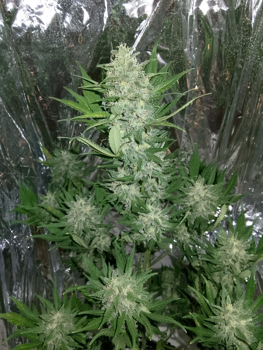 Это мой первый опыт и я в восторге от результата! Прошло ровно 60 дней от каски, уже повесил сушиться. Сомневался, думал может рано ещё, ведь большая часть стигм ещё белые были, но трихомы уже молочные и уже процентов 10 янтарных появилось. Решил попробовать, срезал нижний попкорн, высушил в духовке. Дегустация была впечатляющая, это именно тот эффект, который я хотел! При активном отдыхе эйфорит, бодрит и поднимает настроение. На диване под фильмец приятно расслабляет). Возможно мог ещё постоять, но я не хотел передержать, не люблю сильно седативный эффект. Так что думаю я во время сделал харвест.
