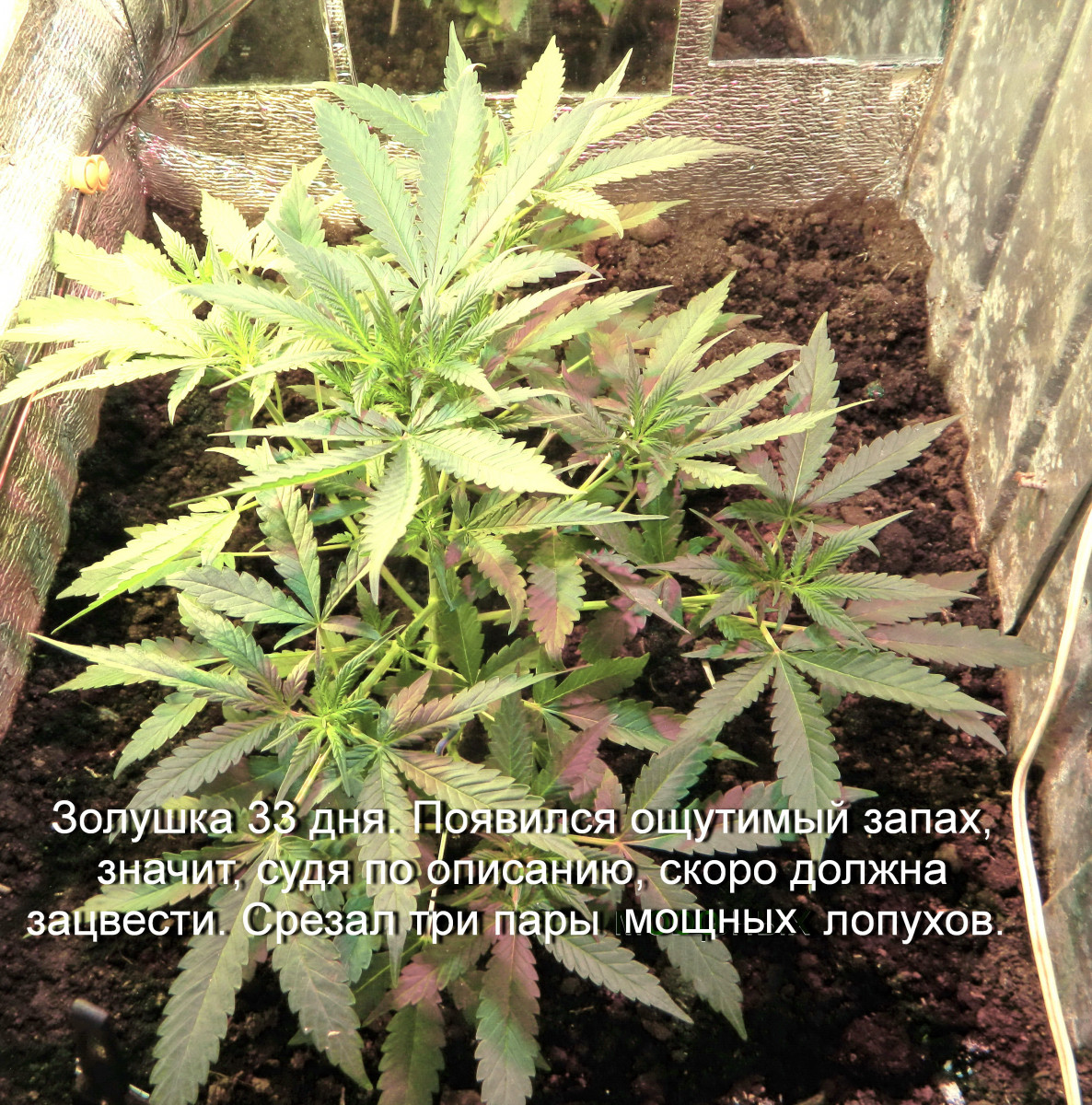 Хороша для индора. Урожай. Запах с начала цветения и до конца (сущенная слива в пыли, марихуана) терпимый. Соответствует описанию.