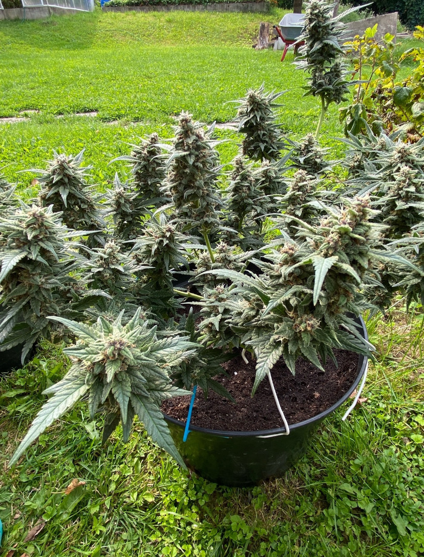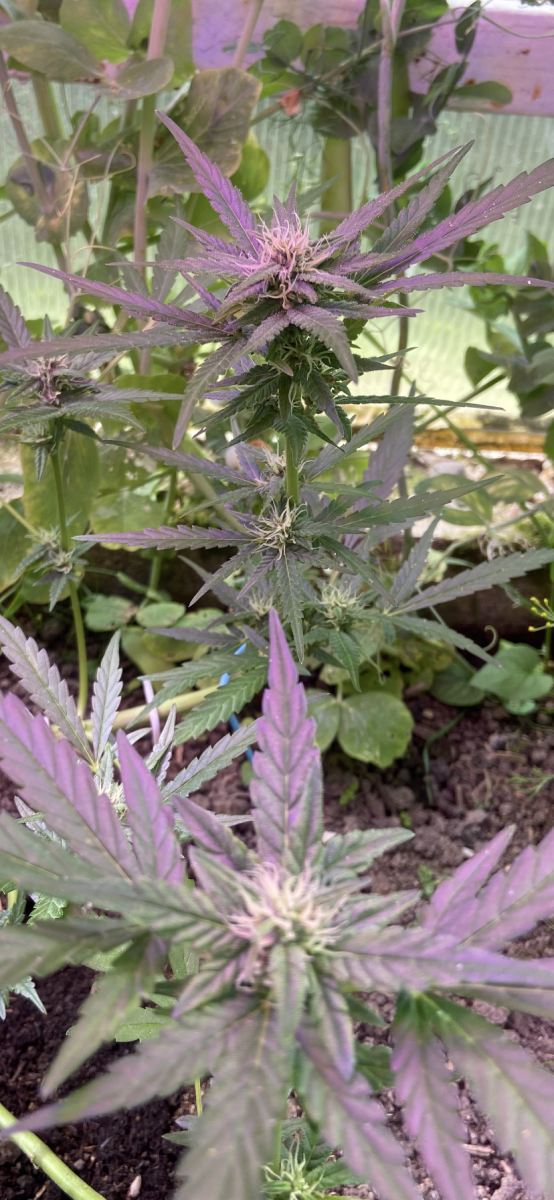 Очень приятно пахнет куст!) немного земляники и цитруса. Пока одному кустику только 7 недель. Растёт в открытом грунте. Так как я новичок в этих делах, первый урожай будет не очень большим думаю. Второй кустик растёт в горшке, со всеми подкормками, топингом и LST тренировками. На первом кусте, шишки начали проявлять фиолетовые оттенки. Жду,не дождусь харвеста ;)) растут быстро и бодро