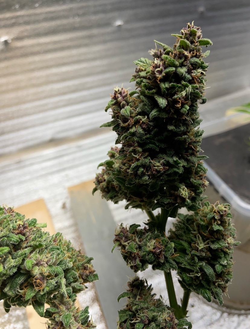Я новичок, но справился, это отличное растение. У него такой красивый цвет и аромат спелых бананов. Собран на 76-й день от семян. Поначалу воздействие дает хорошее настроение, облегчая все беспокойства. Через несколько часов оно переходит в расслабляющее телесное ощущение, помогающее заснуть. Определенно подходит для дневного или дневного использования.
