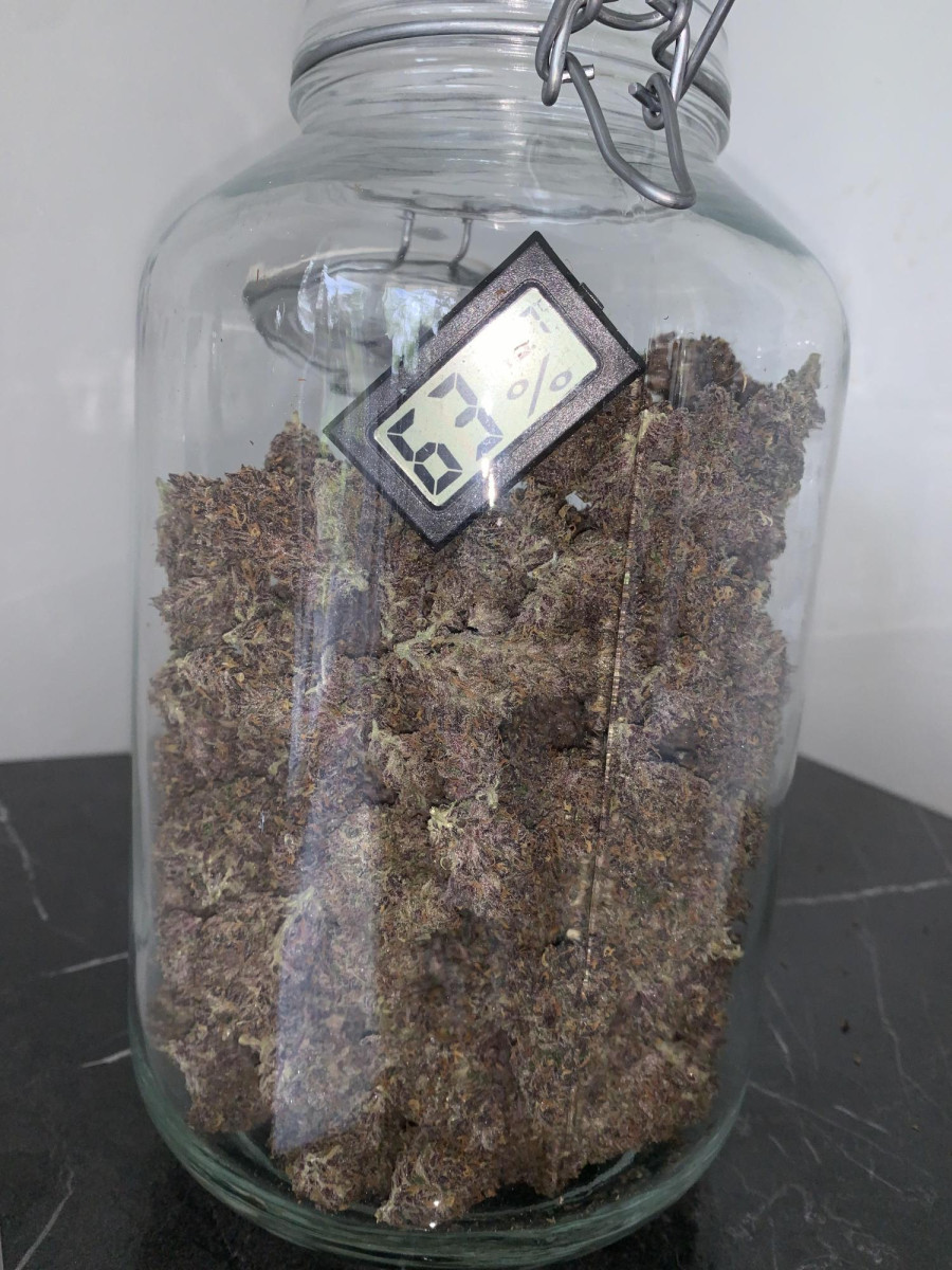 Привет всем. Сегодня последний обзор авто Banana Purple Punch от Fast Buds! Через 7 дней на сухой стойке она была готова к тому, что в банке начнется процесс отверждения. Влажный вес 490 г. Сухой вес 71г.