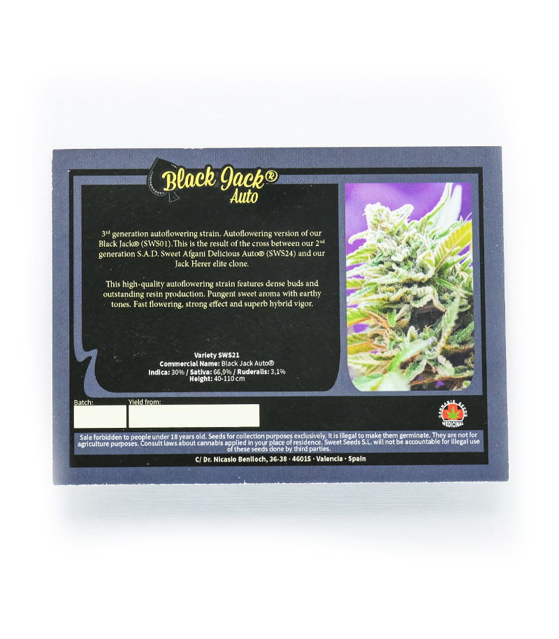 Семена сорта Black Jack Auto fem (Sweet Seeds) Испания, Феминизированные, Автоцветущие, ТГК-19