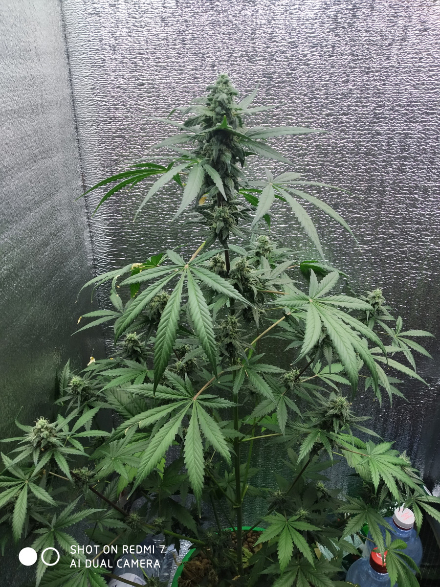 У меня в 15 л горшочке, на кокосовом субстрате эта дама вымахала до 70 см. На раннем этапе росла медленно, но с 3 недели, как только появился пруф какой у нее пол, она начала расти по экспоненте, постепенно обрастая шишечками, некоторые были чуть ли не у корней.