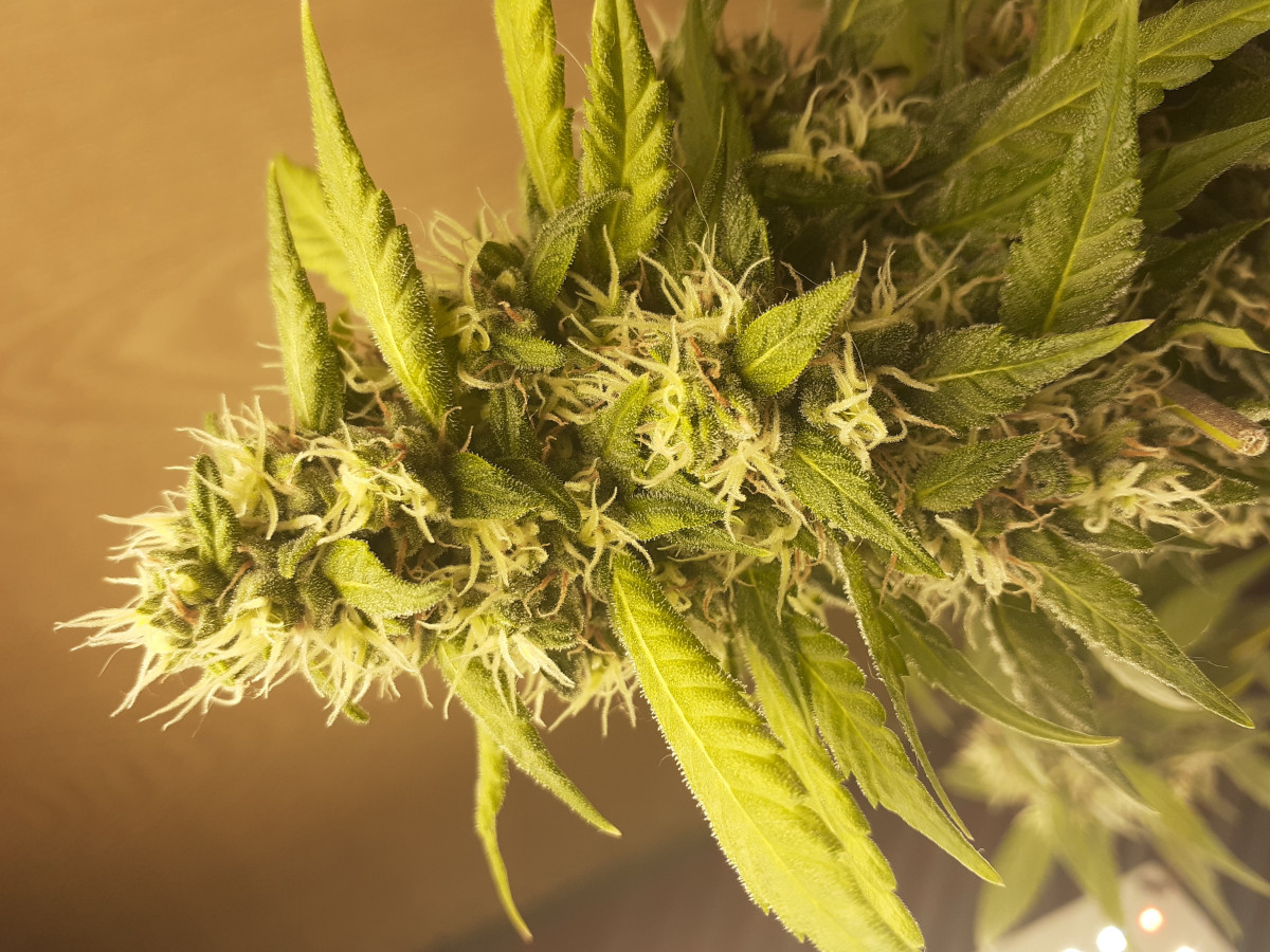 Сорт очень выносливый. Главная моя беда с ней была с температурой и засветом. 2 дня была в температурном стресс и дважды (суммарно 5 дней) в засвете. Как стрессует, то выделяет много влаги и растут только листься. Это на фоне того, что сам по себе кустик очень пышный шарик. Лишние листья могут мешать соцветиям. Сорт быстро приходит в себя. Как только подлечилась, то за ночь пришла в себя и оброслать сочными соцветиями и трихомами. После применения Final part cтала пахнуть ещё сильнее, потому кто любит воздух без запаха придется раскошелиться на фильтр. Да и промывку ФлоройКлин сделать два раза придется.