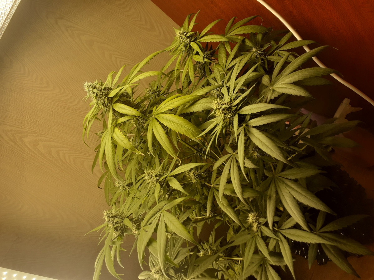 Семечка скинула каску и активно начала расти. С 3 недели начал гнуть растиху, а ей хоть бы что. Выросла не большой но очень пышной. От каски до харвеста 63 дня, дольше держать смысла никакого.
